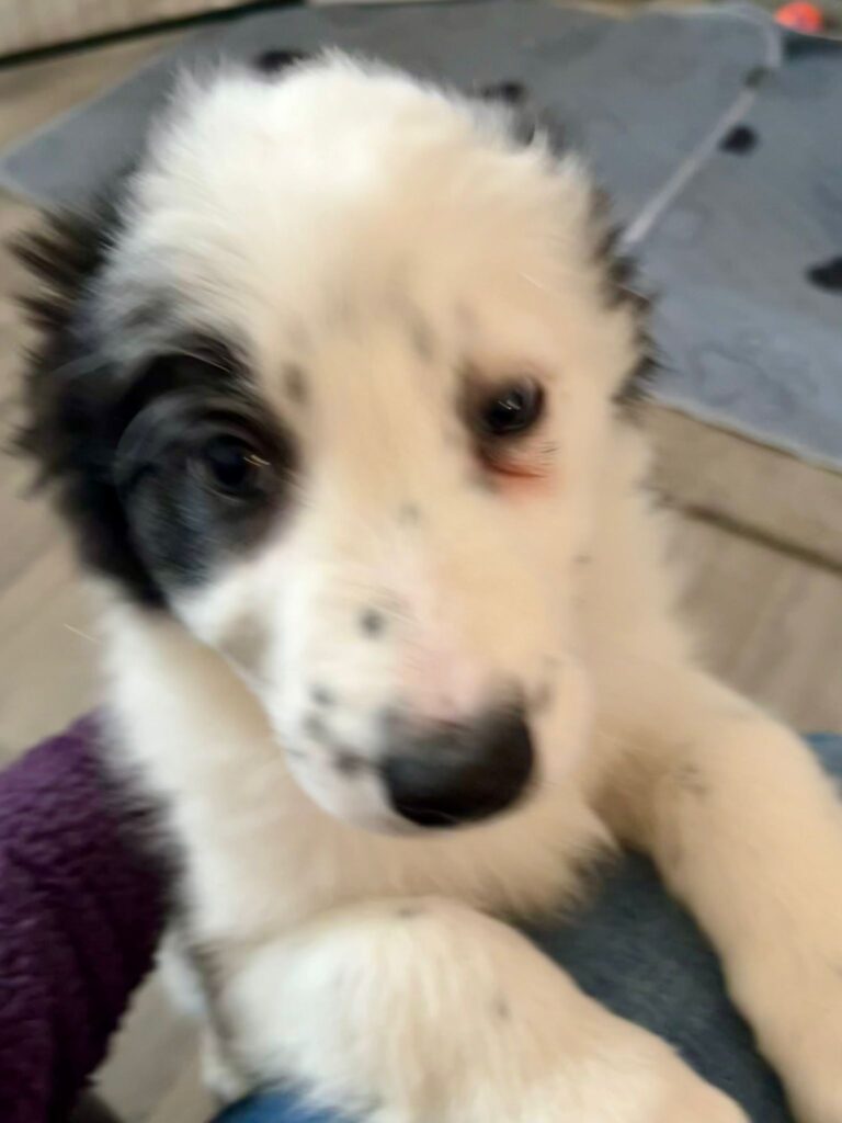 Ginny Wainwright Reason, the properly distinguished name for the Reason family’s new black and white puppy.
